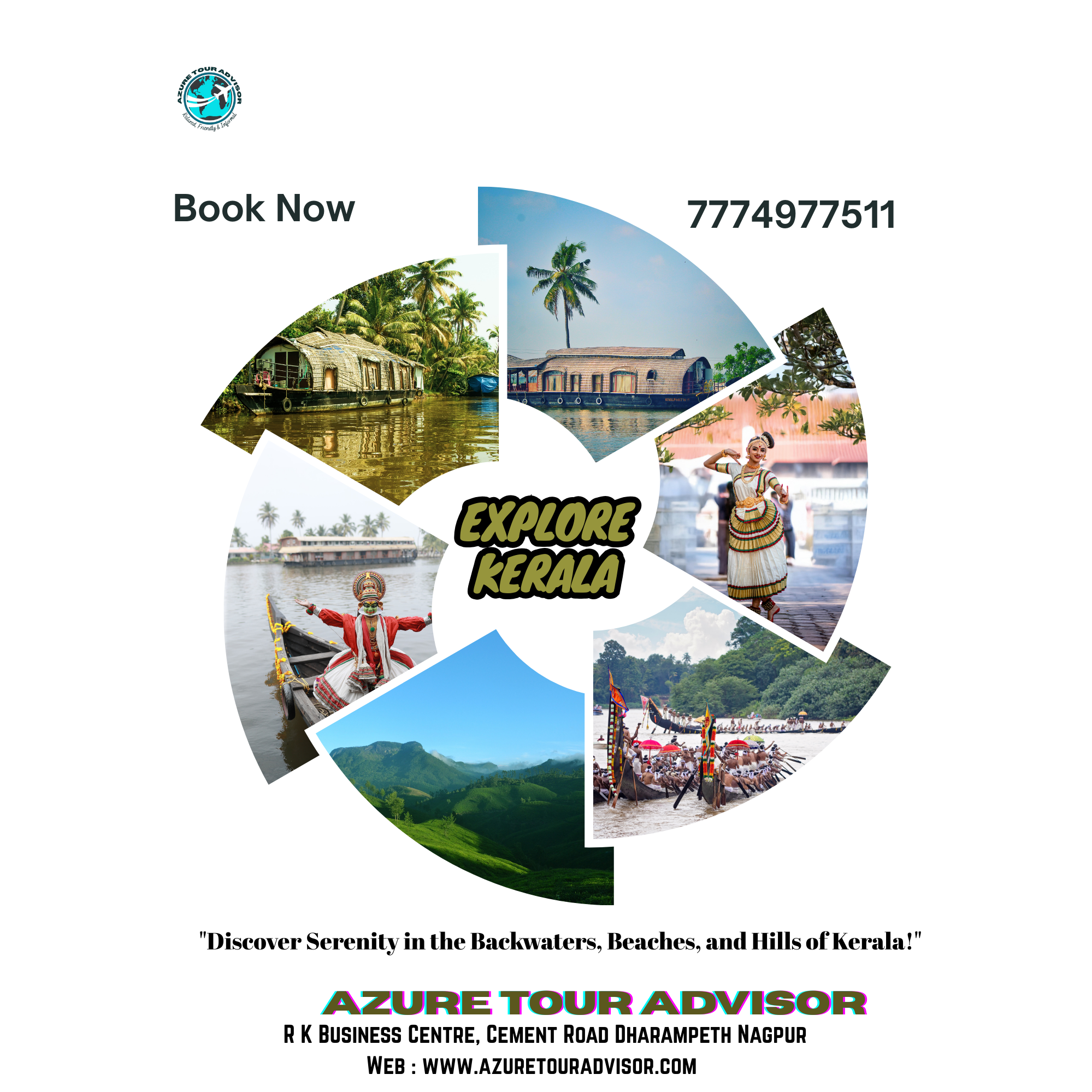 Kerala Tour Package Duration: 04 Nights 05 Days Destination: Munnar, Thekkady, Alleppey, Cochin Day Wise Itinerary : Day 01: Cochin – Munnar (Drive: 135 Kms / 3.5 HRS) Upon arrival at Cochin airport pick up later drive to Munnar enroute visit Cheyyappara Water Falls. Overnight at hotel Day 02: Munnar Today after morning breakfast full day city tour of Munnar including visit the tea plantations, Tea Museum, the Eravikulam National park home of the endangered Niligiri Thar (Ibex), followed by visit to the Mattupetty dam, the the Kundala Lake and other scenic spots. Overnight at Hotel in Munnar. Day 03: Munnar - Thekkady (Drive: 125 Kms / 3 Hours) Today morning transfer to Thekkady has one of the worlds most fascinating natural wildlife reserves noted for its geography, diverse wildlife and scenic beauty. In the afternoon at 1300 Hrs arrive at Thekkady and check-in at Hotel. In the Evening at about 1530Hrs go for a boat ride on the Lake Periyar (own arrangement) where one can have a unique experience of viewing wildlife at close quarters from the safety of a boat on the lake. The greatest attraction of Periyar, however are the herds of wild elephants that come down to play in the lake (Wild life viewing is always dependent on one's good fortune).Overnight at Hotel in Thekkady. Day 04: Thekkady – Alleppey (Drive: 125 Kms / 3.5 Hours) Today after morning breakfast drive to Alleppey upon arrival check in your hotel, later city tour for of Alleppey including Day 05: Alleppey – Cochin (Drive: 85 Kms / 01.5 Hours) Today after morning breakfast a bid of farewell transfer to Cochin airport to connect your flight for onward destination. Book Now : Call @ 7774977511 & 7219054514 Mail Id : azuretouradvisor@gmail.com Website : www.azuretouradvisor.com Office Address : RK Business Centre, Dharampeth Nagpur Travel agents in Nagpur. Best travel agency in Nagpur. Top travel agents Nagpur. Nagpur travel agency contact number. Tour operators in Nagpur. Nagpur tour and travel. Travel consultants in Nagpur. Trusted travel agent Nagpur. Authorized travel agent in Nagpur. International tour packages from Nagpur. Domestic tour packages from Nagpur. Flight booking agents in Nagpur. Visa assistance in Nagpur. Hotel booking services Nagpur. Travel insurance agents Nagpur. Car rental services in Nagpur. Kerala tour packages from Nagpur. Goa tour package from Nagpur. Europe tour packages from Nagpur. Dubai tour packages from Nagpur. Thailand package from Nagpur. Kashmir tour from Nagpur. Andaman package from Nagpur. Best holiday packages in Nagpur. Honeymoon packages from Nagpur. Budget travel agents in Nagpur. Luxury tour operators Nagpur. Group tour packages from Nagpur. Corporate travel services Nagpur. Custom tour planners in Nagpur. Travel agency near me in Nagpur Best tour operator near Sitabuldi Nagpur. Travel agents in Nagpur for international tours. Azure Tour Advisor is the best travel agent in Nagpur. Affordable travel agency in Nagpur city. Best Travel Agency in Nagpur. Azure Tour advisor travel agency in Nagpur. Azure Tour Advisor Kerala tour Nagpur. Azure Tour Advisor international flight booking Nagpur. Best Travel Agent at Dharampeth Nagpur. Best Tour Operator at Dharampeth Nagpur. Best Tour Planner at Dharampeth Nagpur. Kerala tour packages Kerala tourism Kerala travel packages Kerala holiday packages Kerala honeymoon packages Kerala trip planner Kerala itinerary Kerala family tour packages Best places to visit in Kerala Kerala tourism packages Munnar tour packages Munnar honeymoon packages Munnar tea plantation tour Munnar sightseeing places Best resorts in Munnar Thekkady wildlife tour Periyar boat safari Spice plantation tour Thekkady Thekkady tour packages Alleppey houseboat booking Kerala backwater tour Houseboat packages in Kerala Backwater cruise Kerala Kumarakom lake resort Kovalam beach tour Trivandrum sightseeing Kovalam honeymoon packages Best beaches in Kerala Kerala honeymoon tour Romantic getaway in Kerala Munnar and Alleppey honeymoon Luxury honeymoon in Kerala Kerala couple packages Kerala family vacation packages Kerala tour packages for family Kerala group tour packages Kerala kids-friendly destinations Luxury Kerala tour 3/4/5-star resorts in Kerala Kerala Ayurveda spa packages Wellness retreats Kerala Luxury houseboats Kerala 7 days Kerala tour itinerary Kerala honeymoon packages with houseboat Kerala backwater and hill station tour Best time to visit Kerala Affordable Kerala tour packages Kerala luxury resorts for couples Munnar Alleppey Kovalam tour packages Kerala tour operators Travel agency in Kerala Kerala taxi service Kerala car rentals with driver Kerala tourism office near me #GodsOwnCountry #IncredibleKerala #ExploreKerala #KeralaTourism #KeralaDiaries #KeralaBackwaters #MunnarMoments #VisitKerala #KeralaHoneymoon #WondersOfKerala